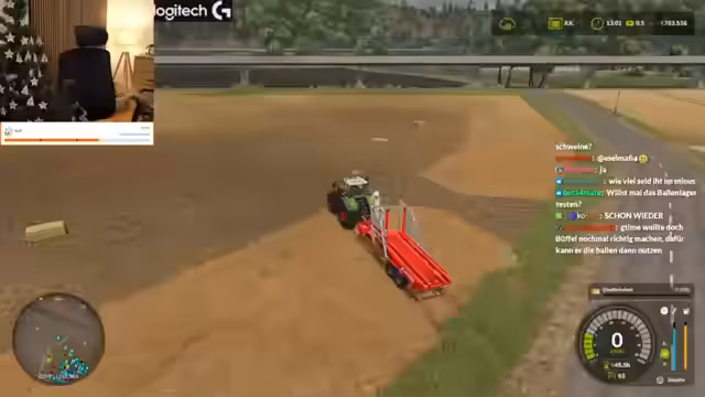 06:33:15Die Ernte schreitet voran, doch es gibt technische Frustrationen. Eine KI im Spiel führt Aufgaben nicht korrekt aus, was zu Unterbrechungen führt. Die Spieler müssen sich darauf beschränken, selbst zu fahren und die Ballen des Weizens einzusammeln. Es wird über den Kauf neuer Anhänger und die Unzufriedenheit mit der aktuellen Hardware gesprochen. Ein längerer Anhänger wird als notwendig erachtet, um die Logistik zu verbessern.
