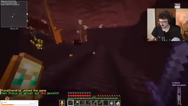 05:46:34Der Streamer begegnet technischen Problemen mit dem Server, insbesondere mit der Verbindung und Performance. Er äußert Frustration über die begrenzte Serverkapazität von nur 930 Slots und befürchtet, nicht alle benötigten Spieler einladen zu können. Gleichzeitig werden Lösungen für Problemstellungen wie das Überwinden der Bedrock-Decke im Nether durch Glitches diskutiert, und es wird versucht, Loot durch gezieltes Einstellen der Welt zu verbessern.