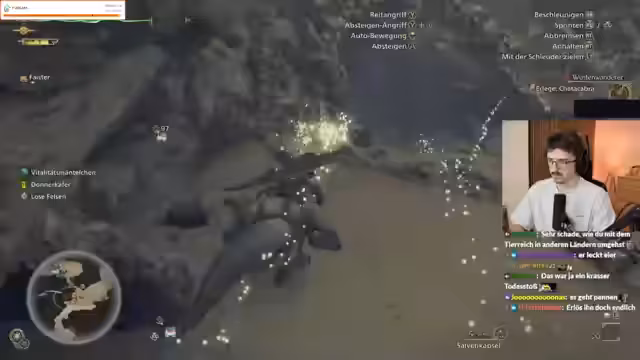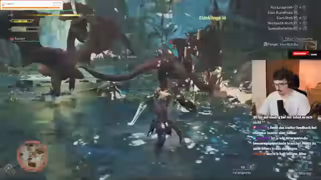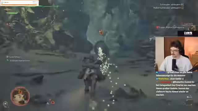 03:04:00Der Streamer berichtet von Performance-Problemen und einem Benchmark-Ergebnis. Während er unterwegs ist, kann er in seinem Lager craftingen. Er kämpft gegen eine Riesenseerose, nervt sich über nervige Pilze und die schiere Menge an kleinen Viechern, die Monster jagen. Der Streamer ist frustriert, da er seine Tränke nicht vom Mount ins Lager holen kann und während des Kampfes stirbt.