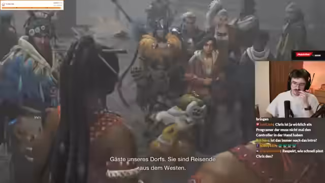 04:59:10Nach einigen Anstrengungen gelingt es dem Streamer und seinem Kameraden 'Chris', eine Koop-Session zu starten. Es gibt eine kurze technische Hürde bei der Audio-Synchronisation, die aber schnell gelöst wird. Beide Streamer sind nun verbunden und reiten gemeinsam durch die Spielwelt, um den nächsten Boss zu jagen. Die Kooperation wird als geglückt und erfolgreich bezeichnet.