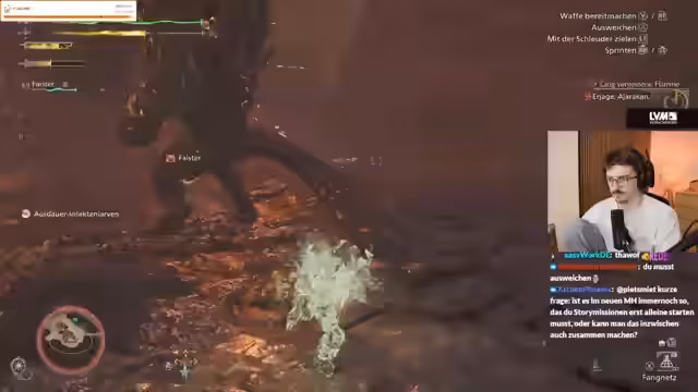 02:18:03Es wird eine deutliche Kritik am Multiplayer-System von Monster Hunter geäußert. Der Streamer äußert seine Frustration darüber, dass Gruppenmitglieder seine Quests nicht automatisch teilen und stattdessen jede Person ihre eigenen Quests starten muss. Er findet dies im Jahr 2025 als veraltet und eine Grundfunktion, die sein einziges großes Kritikpunkt am Spiel ist. Das Problem betrifft insbesondere den Fortschritt in der Story.