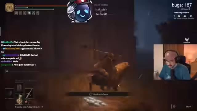 01:59:49Der Streamer kämpft gegen einen Boss und stirbt. Er braucht vielleicht zwei Versuche. Er wird sauer, dass der Boss ihn immer trifft. Er wünscht sich, der Boss würde ficken gehen mit seiner scheiß Blutmagie. Er hat den Schummeltalisman nicht bekommen, den Chef Strobel spielt. Er hat gut Level bekommen. Er wäre nie drauf gekommen, die Wand aufzuschlagen. Er braucht den Talisman nicht wirklich. Er lässt sich backseaten, wo er hin muss. Er läuft seit zweieinhalb Stunden durch diesen Dungeon. Er hat Morgoth schon getötet. Er weiß nicht, was mit Parcours gemacht gemeint ist. Er will nicht nochmal rumrennen. Er muss noch einen Weg geben. Er hat oben bei der Hand noch den Schlüssel nicht aufgemacht. Er hat den Plutalisman auch noch nicht gefunden. Er möchte nach Hause. Er muss runter. Er glaubt den Zuschauern kein Wort. Er hat Backseat Gaming gefragt, aber die sind katastrophal scheiße darin. Der Stream hat Delay. Er macht es doch lieber ohne. Er springt runter und stirbt fast. Er findet es krass, wie die Zuschauer schreiben. Smokey MC Pod fuckt ihn ab. Er wird vom Hummer getötet.