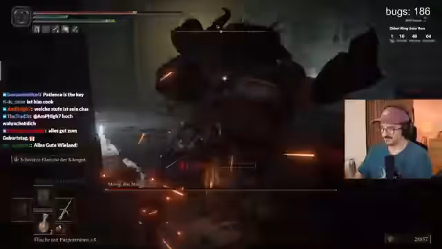 00:51:34Der Streamer spricht über ein kommendes Koop-Game mit Max und Chef und spekuliert über den Release-Termin. Er findet die 'Kapuze des Schuldigen' und überlegt, ein Cosplay zu machen. Er kämpft gegen einen Gegner, der Todespest verursacht, und nutzt Blackflame-Angriffe. Er bedankt sich für Geburtstagsgrüße und erwähnt, dass seine Verwandtschaft gratuliert hat. Er hat sich verlaufen und keinen guten Orientierungssinn. Er ist jetzt 29 Jahre alt und glaubt, dass sein Gaming-Skill immer noch 'insane' ist. Er besiegt einen Gegner und stellt fest, dass er überlevelt ist. Er überlegt, ob er einen bestimmten Flügel hoch will, um zum Boss zu gelangen. Er wird von einer Todesasche angejault und hasst Donnerblitze. Er wird seinen Geburtstag nicht mit seinen Eltern streamen, sondern mit seiner Schwester und seinem Vater in der Stadt einkaufen gehen und abends ins Restaurant gehen.