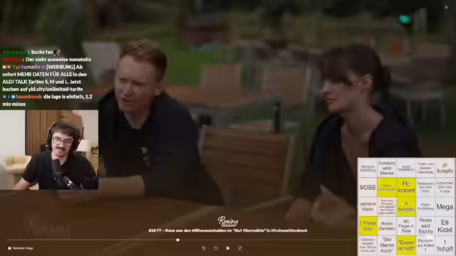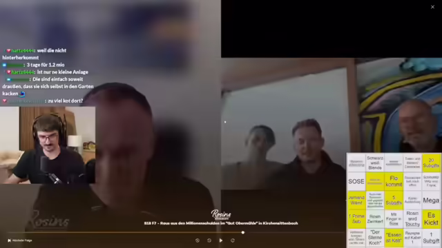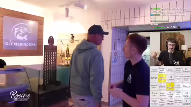 03:55:58Es herrscht große Unzufriedenheit mit dem KI-Portfolio, da der Prompt hätte besser formuliert werden müssen. Es wird befürchtet, dass das investierte Geld verloren ist, besonders im Vergleich zu früheren Investments. Der Besuch führt ins Kaminzimmer des Mühlen-Restaurants, wo MC Heimarbeit erkennbar ist. Die Aufmerksamkeit richtet sich auf Details wie eine ungewöhnliche Steckdose, die im Chat diskutiert wird. Es wird der Eindruck vermittelt, dass dem Besitzer noch ein eigener Stil fehlt. Ein japanischer Sushi-Koch aus Tokio wird vorgestellt, der im Hofladen arbeitet und selbst gezüchteten Fisch verkauft. Diese Kombination wirkt unerwartet und zufällig für ein Landhaus. Der Koch hat seine Ausbildung begonnen hatte, ist gleich in der Anfangszeit, dann musste er dann schließen. Und über eine Empfehlung kam er dann zu uns, den habe ich dann als Beikoch bei uns gehabt. Und jetzt seit letztem Jahr hatte die Ausbildung dann bei mir begonnen. Die Lebensmittel für das Testessen werden eingekauft und ein Testessen mit 20 Personen geplant.