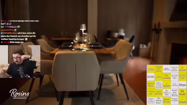 05:11:57Der Gastraum der Obermühle wurde von Flo und seinem Team umgebaut und fertiggestellt, was bei Alexander und Jessica zunächst Skepsis auslöste. Das Ergebnis ist jedoch beeindruckend und sorgt für Wohlfühlatmosphäre. Warme Farben, Erdtöne und ein Kamin bringen Wärme in den Raum, während vernünftige Esstische, schöne Stühle und Teppiche den Charakter des Zimmers verändern. Besonders hervorgehoben wird eine Mooswand, die zwar teuer war, aber einen besonderen Akzent setzt. Das Konzept ist leicht verständlich und spiegelt das Motto "bodenständige Moderne" wider. Trotzdem gibt es noch viel zu tun, insbesondere im Außenbereich. Der Streamer zeigt sich begeistert von der geleisteten Arbeit und freut sich auf die ersten Gäste. Abschließend werden noch Altholzbretter mit Farbe und Pfeilen beschriftet, um den Gästen den Weg zum Restaurant zu weisen.