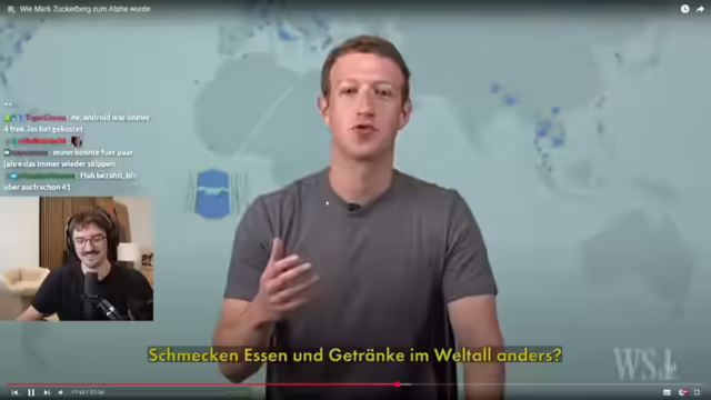 00:56:43Es wird ein Video über Mark Zuckerberg und den Aufstieg von Facebook angesehen. Zuckerberg wird als Edgelord in Harvard dargestellt, der sich mit den Winkelvoss-Zwillingen umgibt. Die Winkelvoss-Zwillinge stellen Zuckerberg eine Idee für ein soziales Netzwerk für Harvard-Studenten vor, woraufhin Zuckerberg seine eigene Website namens The Facebook entwickelt. Die Winkelvoss-Zwillinge sind verärgert darüber. The Facebook wird schnell populär und expandiert an andere Universitäten. Zuckerberg zieht nach Palo Alto und trifft Peter Thiel und John Parker, die ihm beim Aufbau von Facebook helfen. Thiel investiert 500.000 Dollar für 7% Anteile. Der Streamer kommentiert Zuckerbergs Stil und die Übernahme von Instagram und WhatsApp. Zuckerberg wird für seinen Kleidungsstil kritisiert und Facebook wird mit Fake News in Verbindung gebracht. Abschließend wird Zuckerbergs Transformation und sein Metaverse-Projekt thematisiert.