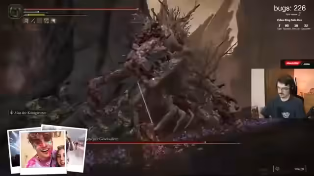 03:26:48Der Streamer findet einen Dunkelschmiedestein 9 und plant, eine Dunkelschmiedewaffe hochzuleveln. Er überlegt, welche Waffe er verwenden soll, und probiert verschiedene Optionen aus, darunter ein Laserschwert, ein Großschwert und eine Axt. Er entscheidet sich schließlich für den Götter-Skalpell heute, der auf Geschick skaliert. Der Streamer bemerkt, dass das Spiel verbuggt ist und dass sein Charakter manchmal nicht richtig rennt. Er findet weitere Items, darunter eine Große Gräbertaille und eine Schummelasche auf 10. Er kündigt an, dass er in 20 Minuten kurz AFK sein muss. Der Streamer testet verschiedene Attacken und stellt fest, dass die Gegner viel aushalten. Er erreicht das Godskin Duo und sucht nach einer Gnade in der Nähe. Er drückt seine Angst vor dem Bosskampf aus, findet aber schließlich eine neue Gnade. Er verbessert seine Attribute, um mehr Waffen testen zu können, und bereitet sich auf den Kampf vor. Der Streamer beginnt den Kampf gegen das Godskin Duo und stellt fest, dass er ihnen kaum Schaden zufügt. Er ist frustriert über ihre Attacken und ihre Fähigkeit, sich gegenseitig wiederzubeleben. Er sucht nach Strategien, um den Kampf zu gewinnen, und überlegt, ob er zuerst den Dicken töten soll. Der Streamer probiert verschiedene Waffen, Anrufungen und Talismane aus, um seine Effektivität im Kampf zu verbessern. Trotz seiner Bemühungen gelingt es ihm nicht, das Godskin Duo zu besiegen, bevor er für seinen Call weg muss.