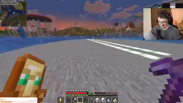 00:10:23Der Streamer beginnt mit dem Sammeln von Farbstoffen für den Bau seiner Bühne. Er benötigt diverse Farben wie Rot, Grün, Gelb, Blau und Lila und sammelt dazu Jungle Saplings, um diese durch Bonemeal zu vermehren. Während des Prozests stellt er fest, dass ihm bestimmte Farbstoffe fehlen und er überlegt, diese durch das 'Spammen' von Bonemeal auf dem Boden zu erhalten. Gleichzeitig beschwert er sich über das Abbau von Sand in seiner Nähe und plant eine runde Bühne für sein Event.