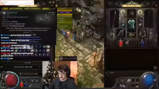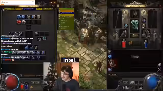 02:56:56Nach langem Craften und Handeln gelingt es dem Streamer, finale Gegenstände wie Handschuhe und Schuhe mit exzellenten Stats wie Stärke und Maximum Mana zu erhalten. Sein Build ist damit wesentlich leistungsstärker und er erreicht Max Resistenzen. Trotz des Erfolgs kündigt der Streamer abrupt an, den Stream beenden zu müssen, um zur Familie nach Stuttgart zu fahren, was bei ihm und im Chat auf Enttäuschung stößt.