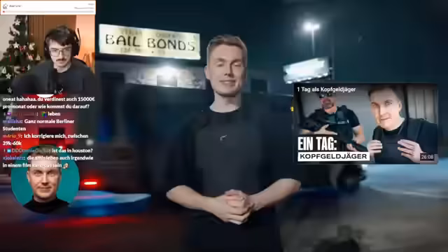 Es wurde ein Dokumentationsvideo über private Kopfgeldjäger in den USA angeschaut, wobei der menschliche Aspekt bei der Festnahme im Fokus stand. Danach wurde ein Gameplay in Path of Exile 2 gespielt, bei dem ein Sorceress-Build durch den Einsatz von Online-Plannern und die Analyse von Itemschadensstats optimiert wurde. Abschließend wurden Trade-Erfahrungen getestet.