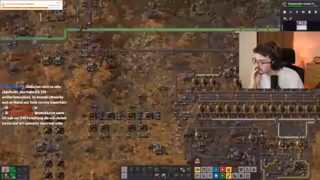 03:10:14Der Streamer kehrt zum eigentlichen Thema des Tages zurück: dem Spielen von Factorio in der Space Age. Der anfängliche Fokus liegt darauf, die Produktion von Nährstoffen aus Unrat wiederzubeleben, um die Versorgung der Basis zu sichern. Es wird ein Chaos aus Produktionsketten und Notfallreparaturen beschrieben, während der Streamer versucht, die Fabrik wieder in den Griff zu bekommen und die Produktion von Raketenbrennstoff sicherzustellen.