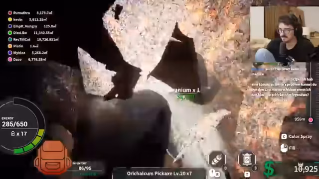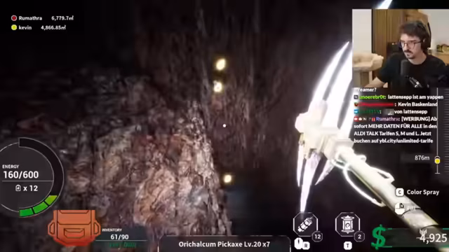 05:44:20Das Spiel befindet sich in einer fortgeschrittenen Phase, bei der der Weg zwischen den Teleportern extrem lang geworden ist. Ein starker Wettbewerb zwischen den Spielern entsteht, wer mehr abbaut und wertvollere Ressourcen findet. Der Streamer hat nun eine Uranium-Spitzhacke, die ihm einen Vorteil verschafft. Trotz des harten Grinds bleibt der Spaß an den sinkenden Erträgen und dem Aufbau eines Reichtums im Spiel.