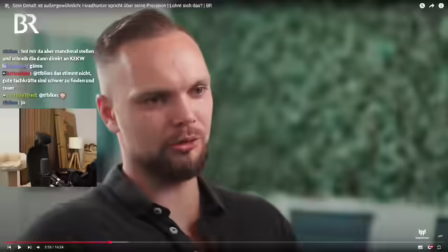 00:48:13Es werden Videos von Sascha angeschaut, in denen es um die Verdienstmöglichkeiten verschiedener Berufe geht, darunter auch ein Tag als Headhunter. Der Streamer zeigt sich interessiert daran, wie Headhunter Geld verdienen und welche Aufgaben sie haben. Es wird über die Problematik von Copy-Paste-Jobanzeigen und die Rolle von Headhuntern diskutiert, die oft versuchen, Mitarbeiter von ihren aktuellen Jobs abzuwerben. Der Verdienst eines Headhunters wird thematisiert, wobei Anfängergehälter von 70.000 Euro und Gehälter von Vollprofis von bis zu 100.000 Euro genannt werden. Es wird auch über die Arbeitsweise von Headhuntern gesprochen, die aktiv in Firmen anrufen, um potenzielle Kandidaten anzusprechen. Der Streamer äußert sich kritisch über die hohe Reisebereitschaft, die oft von Headhuntern erwartet wird. Es wird ein Beispiel gezeigt, wie ein Headhunter einen Kandidaten anruft, um ihm einen neuen Job anzubieten.