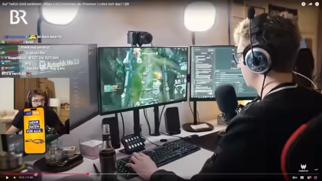 01:31:14Es wird darüber gesprochen, wie die Eltern den Streamer unterstützen, wobei der Vater anfangs skeptisch war, sich aber nun mehr mit dem Thema auseinandersetzt. Der Streamer zeigt sein Setup, bestehend aus Mikrofon, drei Bildschirmen, Kamera, Maus, Tastatur, Mauspad und Kopfhörern. Der PC wurde von einem alten Sponsor gestellt und hätte einen Wert von 3.000 bis 4.000 Euro. Nach einer Stunde Live-Übertragung hat der Streamer 750 Zuschauer, was als gut bewertet wird. Es wird über die Entscheidung nach der Schule gesprochen, ein Studium zu beginnen, aber schnell festzustellen, dass es nicht die richtige Wahl ist. Während des Studiums konnte an der Uni-Liga teilgenommen werden, was viel Freude bereitete. Es wird über die Beleuchtung im Stream gesprochen und wie diese eingestellt ist, um mehr Tiefe ins Bild zu bringen. Der Streamer erwähnt, dass er das Ganze nicht hauptberuflich macht. Nach dreieinhalb Stunden hat der Streamer 1.100 Zuschauer, was als sehr gut bewertet wird. Es wird über die Kosten des Streamens gesprochen, wobei viele Dinge wie Auto, Bildschirme und Keylights umsonst sind, da sie von Sponsoren gestellt werden.