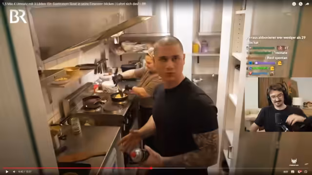 02:05:21Der Streamer schaut sich die Lebens- und Arbeitswelt eines Kochs an. Der 27-jährige Koch arbeitet im 5-Sterne-Hotel „Strandperle“ und verdient ein brutto monatliches Gehalt von 2.700 Euro, was durch Sonntags- und Feiertagszuschläge auf durchschnittlich 2.790 Euro ansteigt. Sein Job wird als extrem stressig beschrieben, sowohl mental als auch körperlich. Der Koch ist für die Zubereitung von Gemüsebeilagen, Sättigungsbeilagen und Suppen zuständig und muss oft parallel mehrere Gänge zubereiten, was eine hohe Multitasking-Fähigkeit erfordert. Er bezeichnet seinen Job als Knochenarbeit und ist sich noch nicht sicher, ob er dies sein ganzes Leben lang machen möchte.