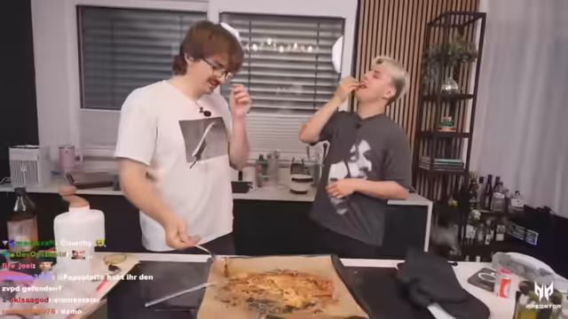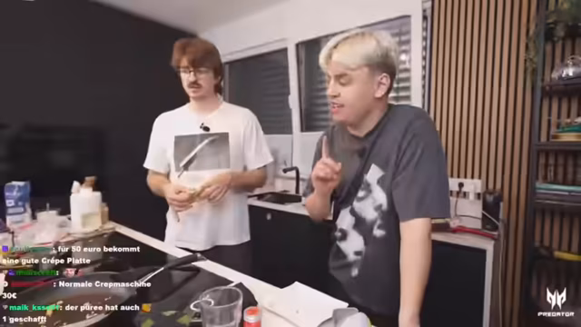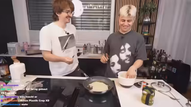 02:38:44Der Chat kritisiert, dass die Gewürze nicht über die Käse-Cracker gegeben wurden, was jedoch widerlegt wird. Ein Versuch, den Crêpe mit der Rückseite der Pfanne zu wenden, scheitert kläglich, und es wird festgestellt, dass die Zubereitung eine Katastrophe ist. Mit einem Plastikstrohhalm wird ein weiteres Hilfsmittel gebaut, das jedoch ebenfalls nicht funktioniert. Der erste Crêpe wird als misslungen eingestuft, was jedoch als normal abgetan wird, da der erste Crêpe immer schlecht werde. Es wird festgestellt, dass Nutella fehlt, und ein Anruf bei Dominik bzw. Kenny wird in Erwägung gezogen, um Nutella zu besorgen. Kenny wird angerufen und erklärt sich euphorisch bereit, Nutella zu holen. Währenddessen wird ein zweiter Crêpe zubereitet, und der Streamer äußert sich enttäuscht über das Ergebnis. Ein Ernährungsarzttermin steht bevor, und es wird überlegt, was dem Arzt erklärt werden soll. Der zweite Crêpe gelingt besser, jedoch fehlt weiterhin Nutella, stattdessen wird Apfelmus verwendet, was als unbefriedigend empfunden wird. Es wird überlegt, einen Stream zu machen, in dem stundenlang Caps gemacht werden.
