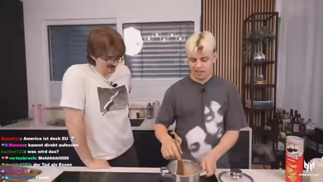 00:50:37Es beginnt ein ungewöhnliches Kochexperiment mit dem Ziel, aus Pringles Kartoffelbrei herzustellen. Zunächst werden Zwiebeln und Knoblauch, sowohl frisch als auch in Pulverform, hinzugefügt. Paprikapulver folgt, und der Vergleich zu kindlichen Kochversuchen mit vorhandenen Zutaten wird gezogen, einschließlich der Erinnerung an einen Fischstäbchen-Burger mit Chilisauce. Es entsteht eine breiartige Masse, die durch ein Sieb passiert werden soll, nachdem sie weich gekocht wurde. Es wird bemerkt, dass der Geruch inzwischen an eine Mischung aus Zwiebeln und Pringles erinnert, was die anfängliche Vorfreude trübt. Das Abgießen des Wassers wird als Verlust von Geschmack kritisiert, da der gesamte 'Juice' verloren geht und nur das Feste zurückbleibt. Der Vergleich zu Knastessen wird gezogen, wobei die Befürchtung geäußert wird, dass selbst dieses schmackhafter sein könnte. Trotz anfänglicher Schwierigkeiten beim Abgießen und der Beschreibung als 'ekelhaft', wird der Kochprozess fortgesetzt.