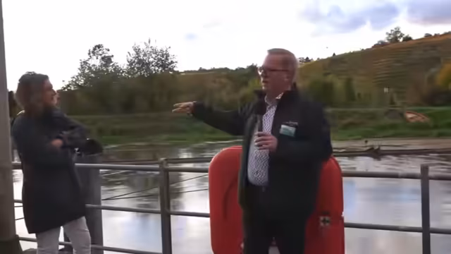 01:10:14Die Rechenanlagen am Wasserkraftwerk sind entscheidend, um Treibgut wie Autoreifen oder Bäume abzufangen, besonders bei Stürmen und Hochwasser. Auf der linken Seite des Kraftwerks befindet sich eine Fischtreppe, die es Fischen ermöglicht, das Kraftwerk zu passieren und sogar gegen den Strom aufzusteigen. Obwohl die Fischtreppe selbst aus den Jahren 1910/1915 stammt, ändern sich die Richtlinien für solche Bauwerke, was zukünftig Anpassungen erfordern könnte, um Wasserrechte für den Betrieb des Kraftwerks zu sichern. Im Inneren des Kraftwerks wird der elektrische Teil besichtigt, wo sich Generatoren befinden, die nach dem Prinzip eines Fahrraddynamos Strom erzeugen, angetrieben von Turbinen, durch die das Wasser fünf Meter tiefer schießt. Diese Generatoren, deren äußere Gehäuse noch original von 1915 sind, wurden durch Repowering-Maßnahmen leistungsfähiger gemacht. Die Drehgeschwindigkeit der Generatoren ist konstant (83,3333 Umdrehungen pro Minute), um eine stabile Netzqualität von 50 Hertz und 400 Volt zu gewährleisten. Die Strommenge wird durch die Stellung der Turbinenschaufeln reguliert.