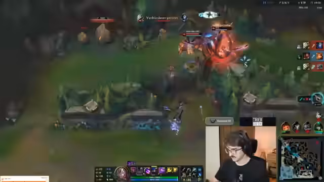 06:18:49Der Stream wird durch ein technisches Problem unterbrochen. Seine Tastatur funktioniert plötzlich nicht mehr, was es ihm unmöglich macht, das Spiel fortzusetzen. Er äußert seine massive Frustration über diesen unglücklichen Zeitpunkt, als gerade ein wichtiger Fight im Jungle bevorstand und er selbst mit seiner Ari ein Ziel anvisiert hatte. Da er sich aufgrund der fehlenden Tastatur nicht mehr bewegen oder angreifen kann, muss das Spiel abgebrochen werden. Dies unterbricht den Flow des Streams und zwingt ihn und das Team zu einer unvorhergesehenen Pause.
