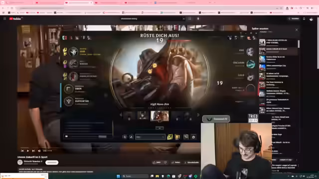 00:03:36Die Entscheidung fällt, eine League of Legends-Runde zu spielen. Während des Spiels treten verschiedene technische Probleme mit dem Sound auf, was zu Verwirrung führt. Der Streamer spielt mit Soraka und erlebt sowohl Erfolge als auch Niederlagen. Er kritisiert eigene Spielentscheidungen und die seines Teams, wie zum Beispiel die Itemwahl seines gegnerischen Lucians, die als suboptimal angesehen wird. Ein Sieg wird letztendlich errungen.