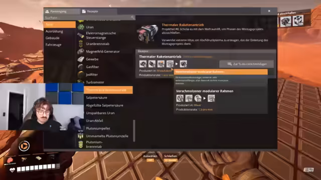 12:17:41Ein wesentlicher Teil dieses Abschnitts ist die enge Zusammenarbeit mit einem anderen Spieler namens Romatra. Gemeinsam arbeiten sie an den Bauplänen für den Warp-Antrieb und diskutieren über Portale als teure, aber effektive Methode für den schnellen Transport. Zudem entdeckt der Streamer zufällig einen Blueprint von Romatra in seinem eigenen Menü, was zu einer Diskussion über die Kategorienverwaltung und die Kooperationsformen führt.
