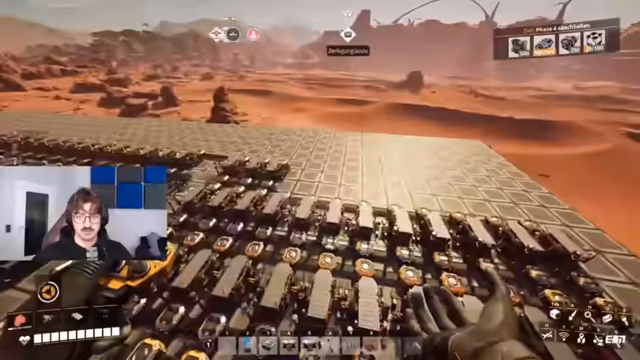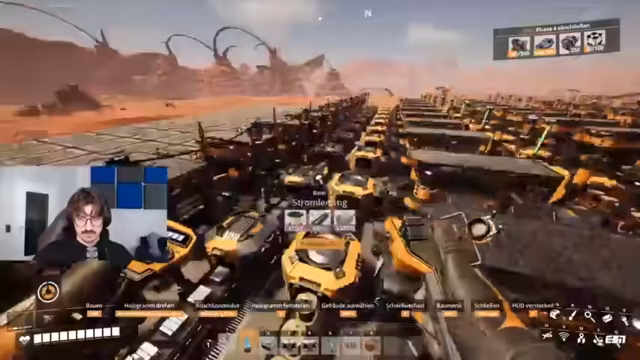 00:00:39Der Streamer beginnt damit, seinen Plan für den Stream vorzustellen. Er plant, zuerst Drohen zu bauen und anschließend eine riesige Produktionsanlage in der Wüste zu errichten. Dafür benötigt er spezifische Ressourcen wie Platinen, Hochgeschwindigkeitsanschlüsse und Platerium. Der Fokus liegt darauf, eine effiziente Logistik und ausreichend Produktion aufzubauen, um die großen Ziele zu erreichen.