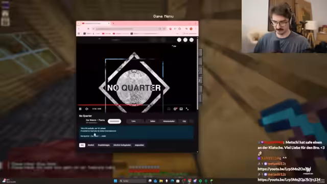 01:26:28Zu Beginn des Stream-Ausschnitts steht die Vorbereitung auf die Nether-Expedition im Fokus. Der Streamer optimiert sein Schwert, indem er den Verzauberungs-Schleifen 'Mending' hinzufügt. Er überlegt, ob er 'Looting' für mehr Beute oder 'Schaden des Spielers' für mehr Kampf-Power anbringen soll, stellt aber fest, dass ihm die nötigen Smaragde fehlen. Nebenbei werden ausgelassene Witze über unangebrachte Namen von Werkzeugen und Gegenständen aus World of Warcraft gemacht, bevor es schließlich in den Nether geht.