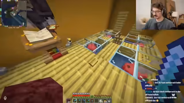 02:44:06Die Hauptaktion konzentriert sich nun auf den Bau einer Netherite-Farm im Nether. Der Streamer berichtet von großen Vorräten an Ancient Debris, die für die Farm benötigt werden. Allerdings gibt es internen Streit über den Arbeitsaufwand und die Effizienz des Prozesses. Ein Spieler wirft seinem Teamkollegen vor, ahnungslos zu sein und das gesamte Projekt durch seine fehlenden Fähigkeiten zu sabotieren. Die Konflikte um die Arbeitsverteilung und die vermeintliche Inkompetenz eines Teammitglieds dominieren die Diskussion und trüben das Teamgefühl während des intensiven Farmings.