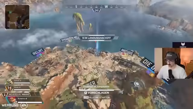 02:08:16Der Stream setzt sich mit dem ersten Spiel in Apex Legends fort. Das Ziel ist, zusammen mit den Zuschauern Freddy und Romatra als Team zu gewinnen. Der Fokus liegt auf der praktischen Anwendung der zuvor erklärten Mechaniken: dem Sammeln von Ausrüstung, dem Verteilen von Loot an Teammitglieder und der Nutzung der Fähigkeiten der gewählten Legendes wie Lifelines 'Schildzelle'. Der Verlust des ersten Spiels wird als Lernerfahrung genutzt, um die Taktik für die nächste Runde zu optimieren.