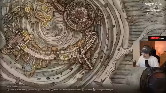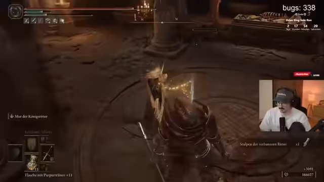 05:39:22Der Streamer interagiert mit dem Charakter Goldmask und beginnt dessen Questline. Er sucht aktiv nach dem Charakter Alexander, wobei er die Chat-Community anweist, ihm nicht bei der Suche zu helfen, um das Spielerlebnis authentisch zu gestalten. Währenddessen kämpft er gegen mehrere Bossgegner, darunter einen kleinen Bastard, und findet neue Gegenstände wie ein verschlingerzepter. Der Fokus liegt auf der Entdeckung und der Interaktion mit den Charakteren des Spiels.