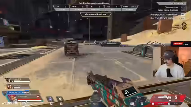 01:45:13Nach dem Erfolg gegen Melania wechselt der Streamer zu Apex Legends, um den Inhalt abwechslungsreich zu gestalten. Er beginnt mit einer Einführung in die grundlegenden Spielmechaniken wie Waffen, Fähigkeiten der Legendes, Beute-System und das Levelling von Ausrüstung. Es werden Tipps zur Steuerung, zu Waffenklassen wie Assault Rifles und Shotguns sowie zu wichtigen Gameplay-Elementen wie dem Movement und dem 'Jitter Aim' gegeben, um neuen Spielern den Einstieg zu erleichtern.
