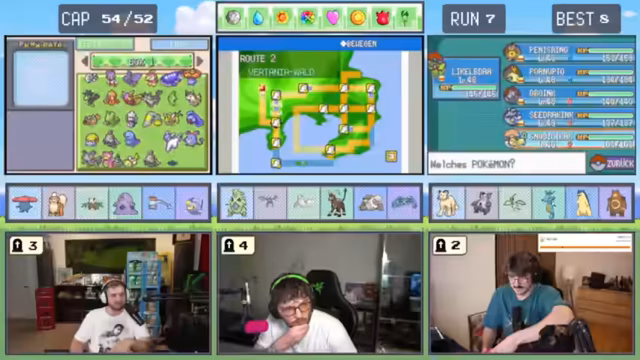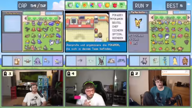 04:29:33Nach dem legendären Fang ist ein Pokémon, die Flora, gestorben. Das zwingt den Streamer, sein Team neu zu strukturieren und zu überlegen, welche Pokémon für die Top 4 am besten geeignet sind. Er geht davon aus, dass das Legendary Pokémon (Latios) im Team bleiben wird. Das Hauptproblem ist die Findung von spielbaren Pokémon, da einige wie Sobilikat und Kröink als unspielbar gelten. Eine zentrale Diskussion entsteht, ob Shastrubil mit einem Wahlband und der richtigen Attacke spielbar gemacht werden kann.