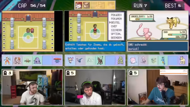 05:18:46In einem tragischen und überraschenden Moment verliert der Streamer einen wichtigen Teil seines Teams, nachdem ein Gegner mit dem Stat-Booster 'Gedankengut' einen seiner Pokémon schnell ausschaltet. Der Schmerz des Verlustes ist immens, da das Team fast komplett ausradiert wurde. Dies zwingt ihn, den Run fortzusetzen und die verbleibenden Kräfte neu zu bewerten. Obwohl die Niederlage verheerend ist, bleibt der Streamer motiviert und optimistisch, den Run mit den verbleibenden Pokémon fortsetzen zu können.
