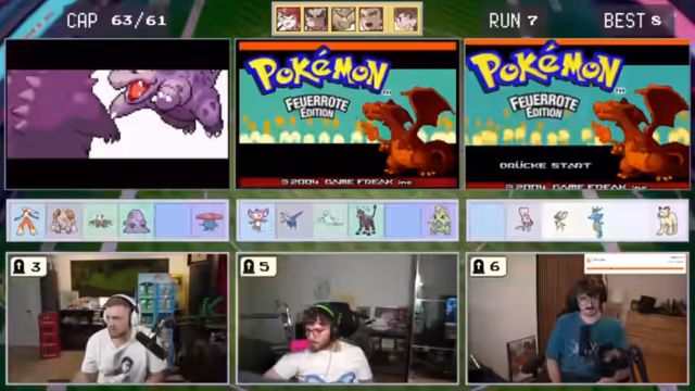 06:34:20Nach einem hart erkämpften Sieg bereitet sich der Streamer auf den nächsten Trainer vor. Er analysiert die Pokémon des Gegners und deren mögliche Attacken. Er überlegt, welches Pokémon er als Ersten einsetzen soll, um die größte Wirkung zu erzielen. Seine Teammitglieder sind unterschiedlich stark auf die erwarteten Typen abgestimmt und er muss eine fundierte Entscheidung treffen.