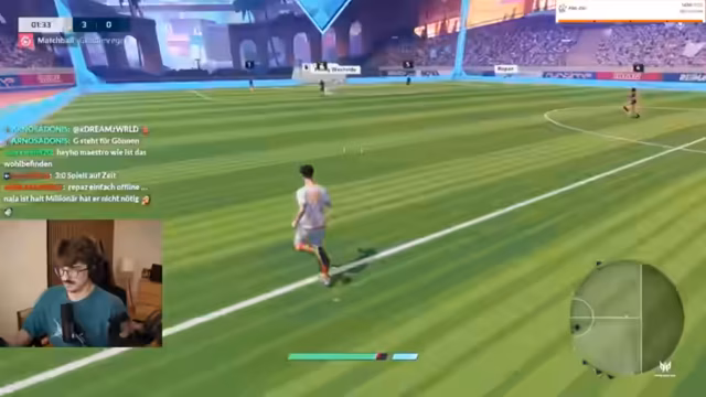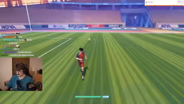 09:42:29Der Streamer zeigt Frustration über seine eigenen Fehler, wie ein 'Fake Fee' (ein falsches Grätschen), und über Spielsituationen, in denen er den Ball 'nicht angenommen' hat. Trotzdem bewahrt er seinen humoristischen Ton und reagiert spontan auf Spielereignisse. Die Interaktion mit dem Chat und den Mitspielern ist sehr lebhaft, was den Stream unterhält und zeigt, wie er auch unter Druck den Spaß am Spiel nicht verliert.