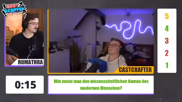 04:18:22Mit Henke's Ausscheiden sind nur noch wenige Teilnehmer im Spiel. Der Schwierigkeitsgrad ist hoch, und die Teilnahme ist ein reines Überlebensspiel. Die Fragen werden zu einem schnellen Abfrage-Marathon. Teilnehmer wie Kevin beweisen ihr Wissen in Gaming-Topics ("World of Warcraft") und Allgemeineinem ("Wie viele Wochen hat ein Jahr?"). Das Spiel neigt sich dem Ende zu, wobei jeder verbleibende Teilnehmer unter immensem Druck steht, um die Chance auf den Sieg zu wahren.