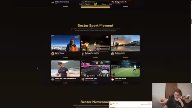 01:01:55Die Unterhaltung verlagert sich auf die Kategorie "Bester Sport Moment", wobei der Streamer Clips wie den Gipfelstieg auf dem Djebel Toubkal in Marokko und das Finale der japanischen Dart-Liga zeigt. Er äußert seine Bewunderung für die sportlichen Leistungen und die modernen Streaming-Technologien wie Starlink, die solche Live-Überhautungen erst ermöglichen. Ein besonders emotionaler Clip, in dem ein Streamer nach einem Lauf seine Familie anspricht, wird als sehr bewegend empfunden.