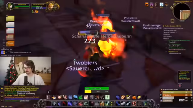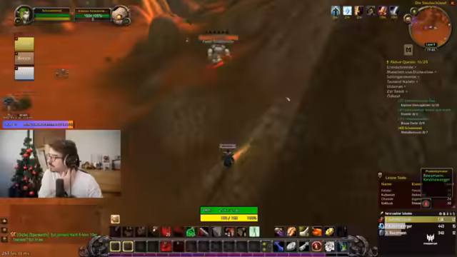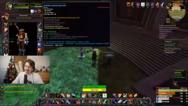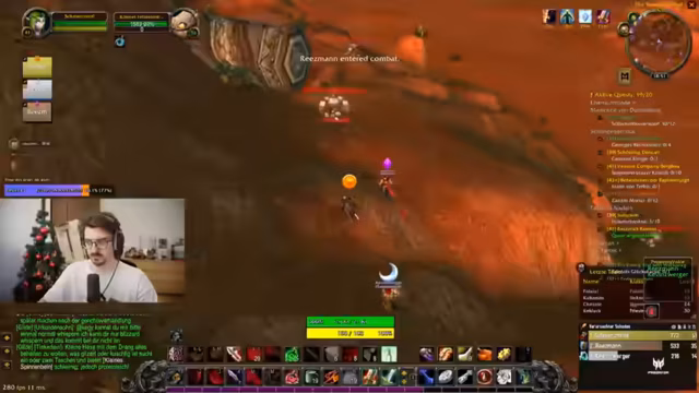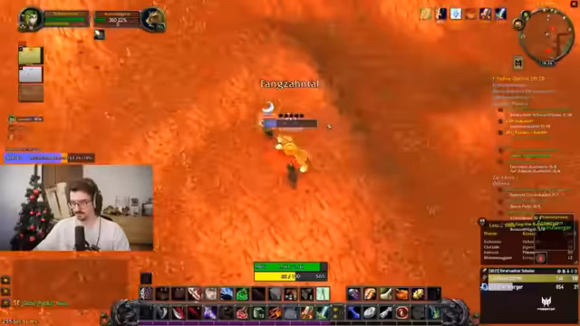 01:30:04Der Streamer findet eine Kress im Ödland, die zum Herstellen einer Feuerverzauberung auf ein Schwert führt. Er erhält den Drop nach dem Sammeln von Drachenherzen und aktiviert eine freie Verzauberung. Gleichzeitig wird eine Gruppe beobachtet, die versehentlich mehrere Elite-Mobs anlockt, aber vor dem eigenen Raid stirbt, was dazu führt, dass keine XP geteilt wird.