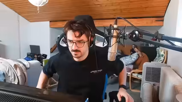 00:34:38Die Stimmung verschiebt sich zu Kampfflugzeugen. Der Streamer möchte eine F-35, F-14 oder einen Eurofighter bauen, bewundert das Design von Tarnkappenbombern wie der F-117 und SR-71. Gleichzeitig diskutiert er sein früheres Studium der Luft- und Raumfahrttechnik. Er erzählt, seinen Bachelor mit einer Note von 2,7 abgeschlossen zu haben und beim Master-Studium aufgrund der hohen Anforderungen und der Belastungen durch die Pandemie abgebrochen zu sein. Er vergleicht die Schwierigkeiten des Studiums mit dem Spielen von Videospiele.