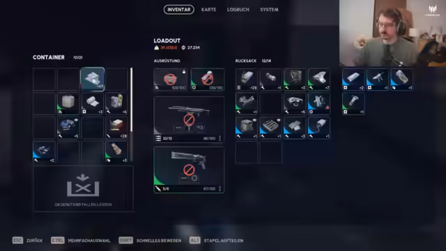 05:43:35Nachdem das Team das gegnerische Team eliminieren konnte, wird das gelootete Inventar gecheckt. Es wird über das Aufgeben von Ausrüstung gesprochen, um Platz für wichtigere Gegenstände zu schaffen. Der Streamer erwähnt noch ausstehende Quests, wie zum Beispiel die Suche nach bestimmten Androiden auf der Karte und eine Mission, die im Forschungs- und Verwaltungsgebäau stattfindet.