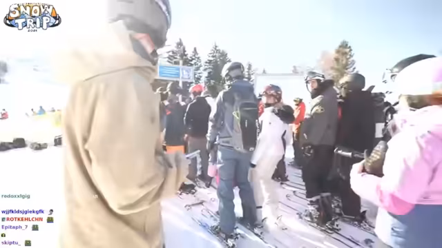 02:42:44Die Stimmung in der Menschenmenge eskaliert und gleicht einem 'Battle Royale'. Es kommt zu Drängereien und rücksichtslosem Verhalten anderer Skifahrer, die sich vordrängeln. Die Streamer geraten in einen Streit über den richtigen Weg, wobei einige Mitglieder der Gruppe beschließen, einen anderen Lift zu nehmen, während andere zurückbleiben. Es entstehen Spannungen innerhalb der Gruppe, weil Hugo sich absondert und für kurze Zeit die Verbindung zur restlichen Gruppe verliert.