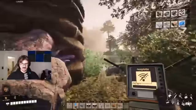 04:13:50In den frühen Stunden des Streams kämpfen die Spieler gegen eine zunehmend feindliche Umwelt. Sie stoßen auf große Spinnen und Aliens, die sie aggressiv jagen und töten. Die Erkundung des giftigen, radioaktiven Sumpfs erweist sich als extrem gefährlich und stressig, was zu mehreren Toden führt. Gleichzeitig wird das Sammeln von Ressourcen wie Festplatten und Mercer-Spheres als overpowered und strategisch wichtig eingestuft, um neue Rezepte zu erforschen.