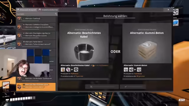 06:43:34Ein zentrales neues Ziel ist der Bau eines Weltraumlifts, für den spezifische Komponenten wie Supercomputer und Funksteuerungseinheiten benötigt werden. Der Streamer koordiniert mit seinem Team die Verteilung der Aufgaben und stellt sicher, dass die notwendigen Ressourcen wie Kohle, Kupfer und Aluminium beschafft und in die Cloud hochgeladen werden, um eine gemeinsame Produktion zu ermöglichen.