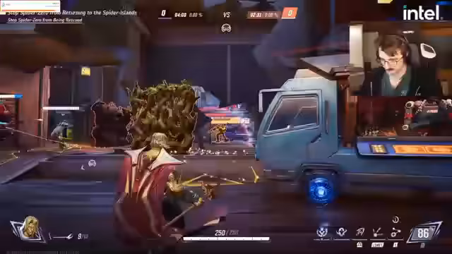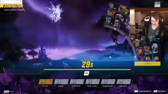00:29:10Der Streamer und sein Team koordinieren ihre Picks für ein neues Spiel. Er spielt primär Hawkeye während sein Teamkamerad Wolverine wählt. Sie diskutieren über die Synergien ihrer Fähigkeiten und strategische Vorgehensweisen. Obwohl sie in mehreren Situationen starken Druck ausüben und einen Punkt schnell einnehmen, verlieren sie das knapp. Die Gegner nutzen Portale und Healer sehr effektiv, was den Streamer frustriert und ihn dazu bewegt, seinen Champion zu wechseln.