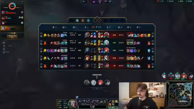 10:52:12Der Streamer wechselt zum Spielen von League of Legends in einem Duo-Queue mit Max und Chef Strobel. Es herrscht Frustration über das Matchmaking, das ihnen wiederholt schlechte Mitspieler zuweist, insbesondere auf der Top-Lane. Ein Gegner mit einer Winrate von nur 26% wird als besonders bemerkenswert kritisiert. Der Streamer fühlt sich oft als der schlechteste Spieler im Team und diskutiert über die Schwierigkeiten, seinen Account zu verbessern, was zu einem Kreislauf aus Verlusten und spärlichen Siegen führt.