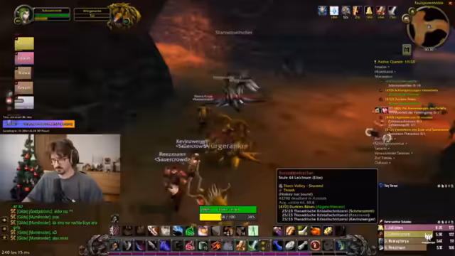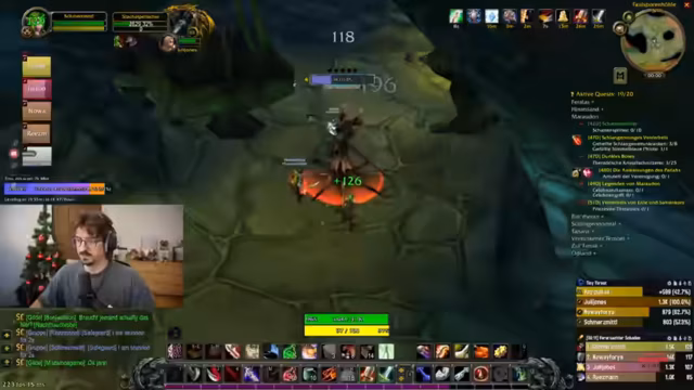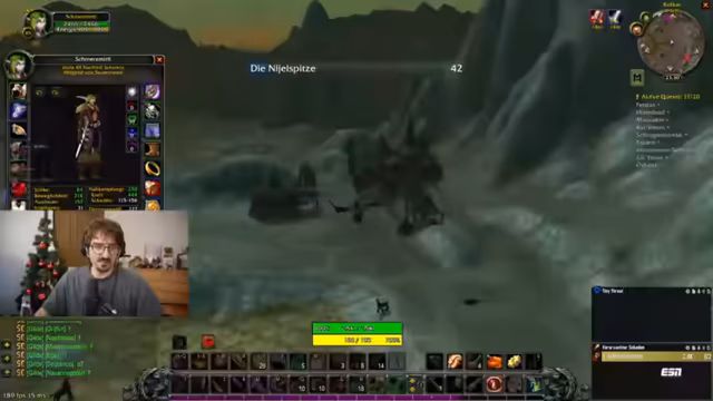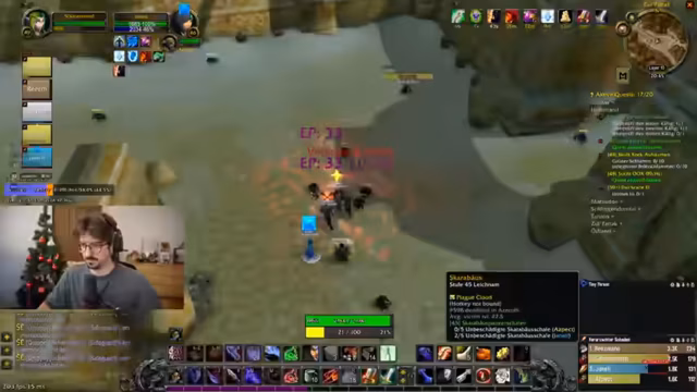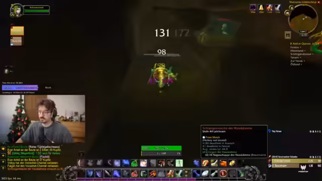 00:17:42Nach der technischen Diskussion wechselt der Streamer zu World of Warcraft und beginnt mit dem Leveln seines Charakters auf Level 48. Es wird über Quests diskutiert, insbesondere über die Erfassung von Mobs in Maraudon und anderen Gebieten, wobei die Herausforderung durch überlevelte Monster hervorgehoben wird. Der Streamer erwägt, Gruppenquests zu machen, und plant Dungeon-Besuche wie Maraudon oder Zul'Farrak, betont jedoch, dass dies sorgfältig vorbereitet werden muss, um Todesfälle zu vermeiden.