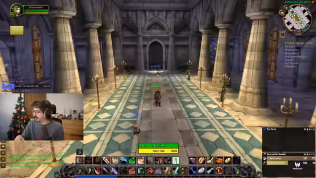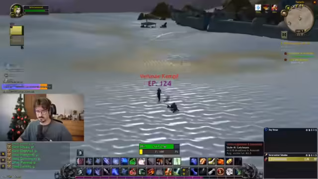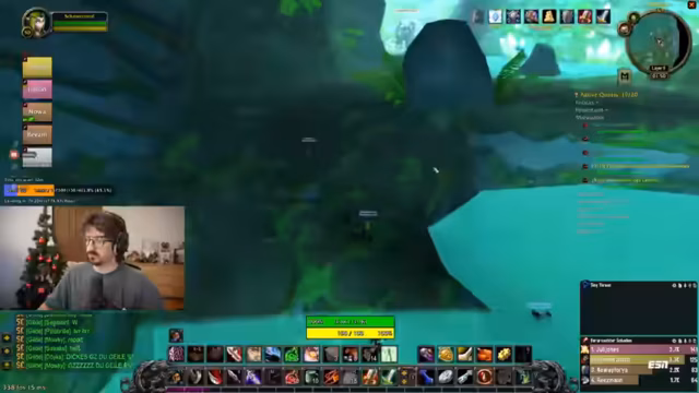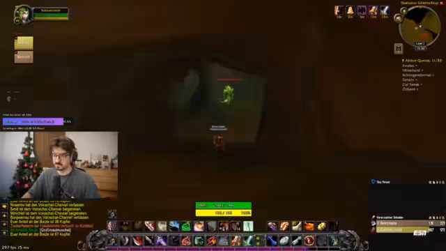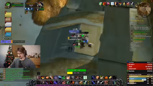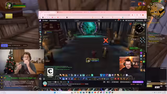 12:15:36Im Dungeon werden grüne Blobs identifiziert, die als Melees nicht angegriffen werden sollten, da sie Schaden um sich herum verursachen. Das Team diskutiert die Strategie, Kite-Techniken einzusetzen, da vier Melees vorhanden sind. Es wird darauf hingewiesen, dass Zeit beim Warten auf Gruppen wichtig ist, und Triaden-Kämpfe werden vorbereitet. Ein kurzer Hinweis auf ein Fußballspiel wird gegeben, wobei Deutschland gegen die USA in der Kings League spielt.
