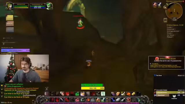 11:40:46Die Gruppe nimmt die letzten Quests in Desolace an und rüstet sich für den Fullrun auf. Es wird klar kommuniziert, welches Item für welches Quest-Ziel benötigt wird, insbesondere für das 'Ruf der Natur'-Quest, das in Maraudon erfüllt wird. Die Gruppe bereitet sich darauf vor, die Instanz über den richtigen Eingang (die orangene oder lila Tür) zu betreten. Die Aufmerksamkeit gilt der Risikominimierung, besonders in den ersten Abschnitten des Dungeons mit gefährlichen Mobs wie 'Stachelpeitscher', bei denen Distanz crucial ist.