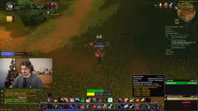 10:14:41Der Livestream widmet sich der Bewältigung von Quests in einem bestimmten Gebiet. Ein zentraler Punkt ist das systematische Töten von Monstern, darunter spezifische Arten wie 'Wild-Eni-Kiffer' und das Anklicken von Objekten wie Zahnrädern. Dabei wird die Schwächere der Monster im Vergleich zu anderen Gebieten betont. Es zeigt sich Verwirrung über die genauen Anforderungen der Quests, zum Beispiel ob auch Eulen oder bestimmte Vögel eliminiert werden müssen, während gleichzeitig ein Sammelauftrag für Federn erledigt wird.
