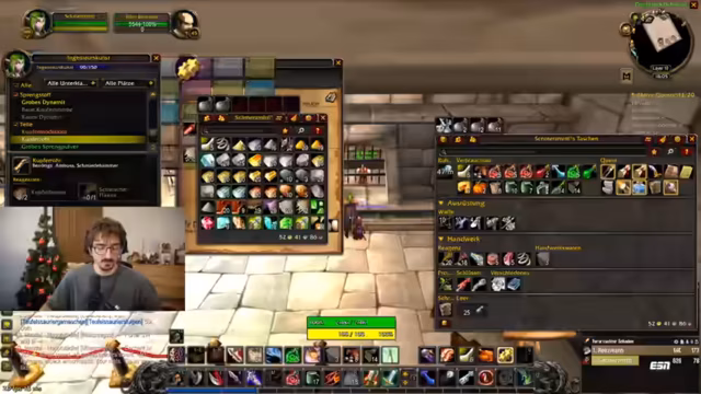 11:29:53Die Gruppe ist in Danassus, um Ausrüstung zu verzaubern und Ressourcen zu organisieren. Es geht um die Verzauberung von Waffen und Rüstungen, wobei teure Materialien wie 'Essenz des Feuers' und 'Goldruten' benötigt werden. Ein Spieler hat eine wertvolle 'Pre-Raid'-Brustplate von einem Boss-Boss (Ravax) gedroppt, was die Diskussion über Endgame-Ausrüstung (bis Naxxramas) anheizt. Die Gruppe sucht nach Schmieden, die Goldruten herstellen können, um alle für den Dungeon zu wappnen.